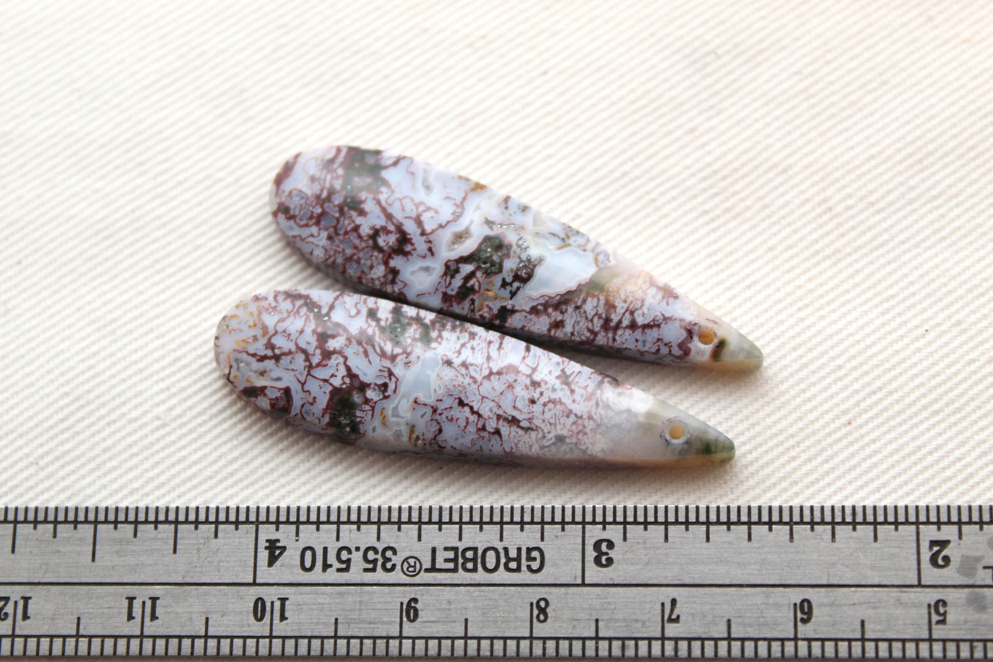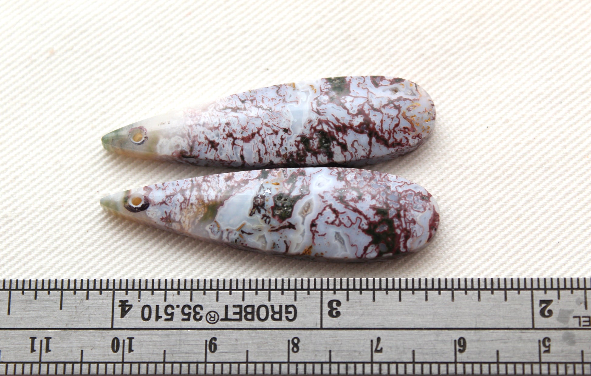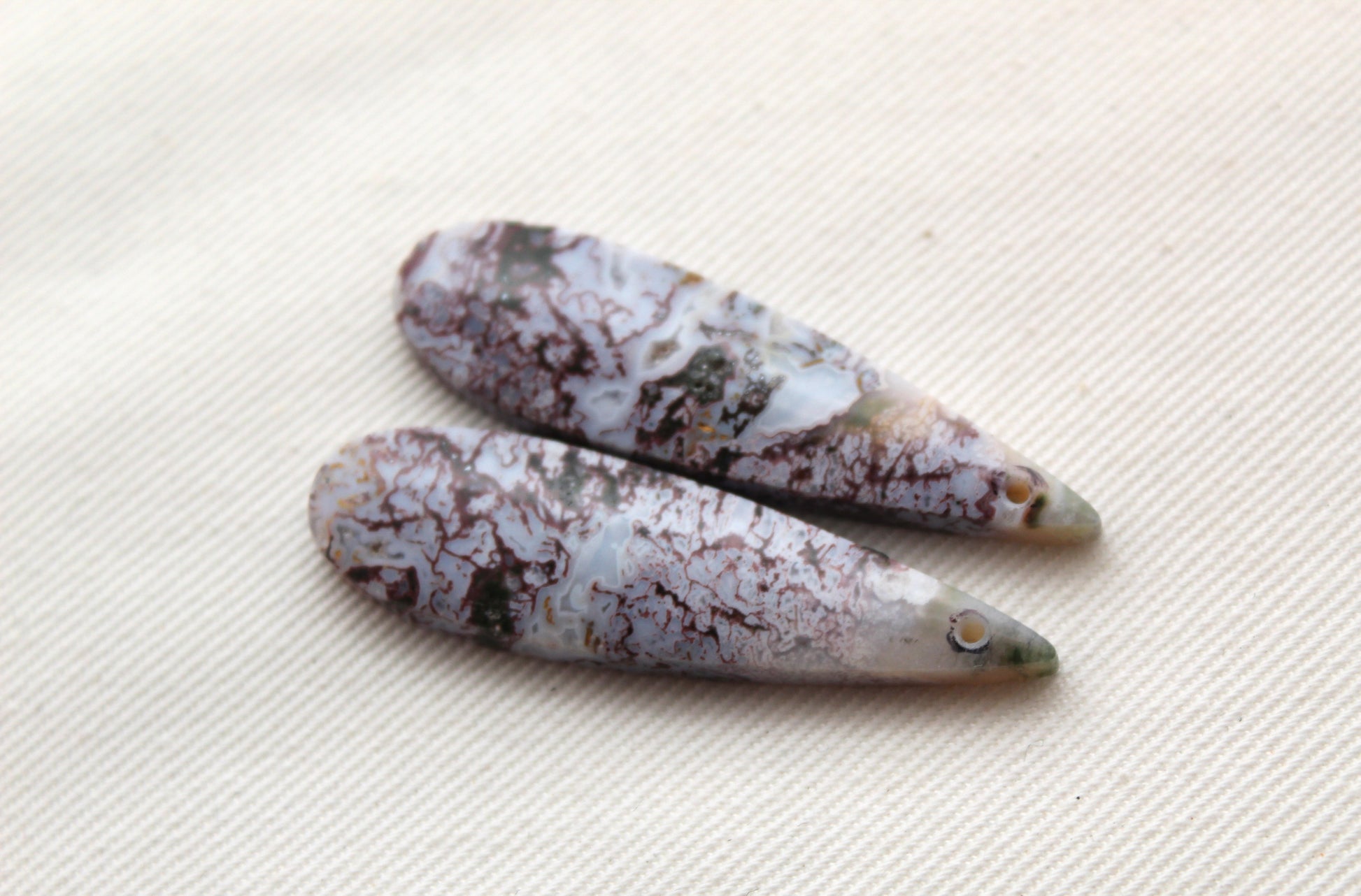 Pair of Indonesian Jasper Cabochons pink teardrop DRILLED