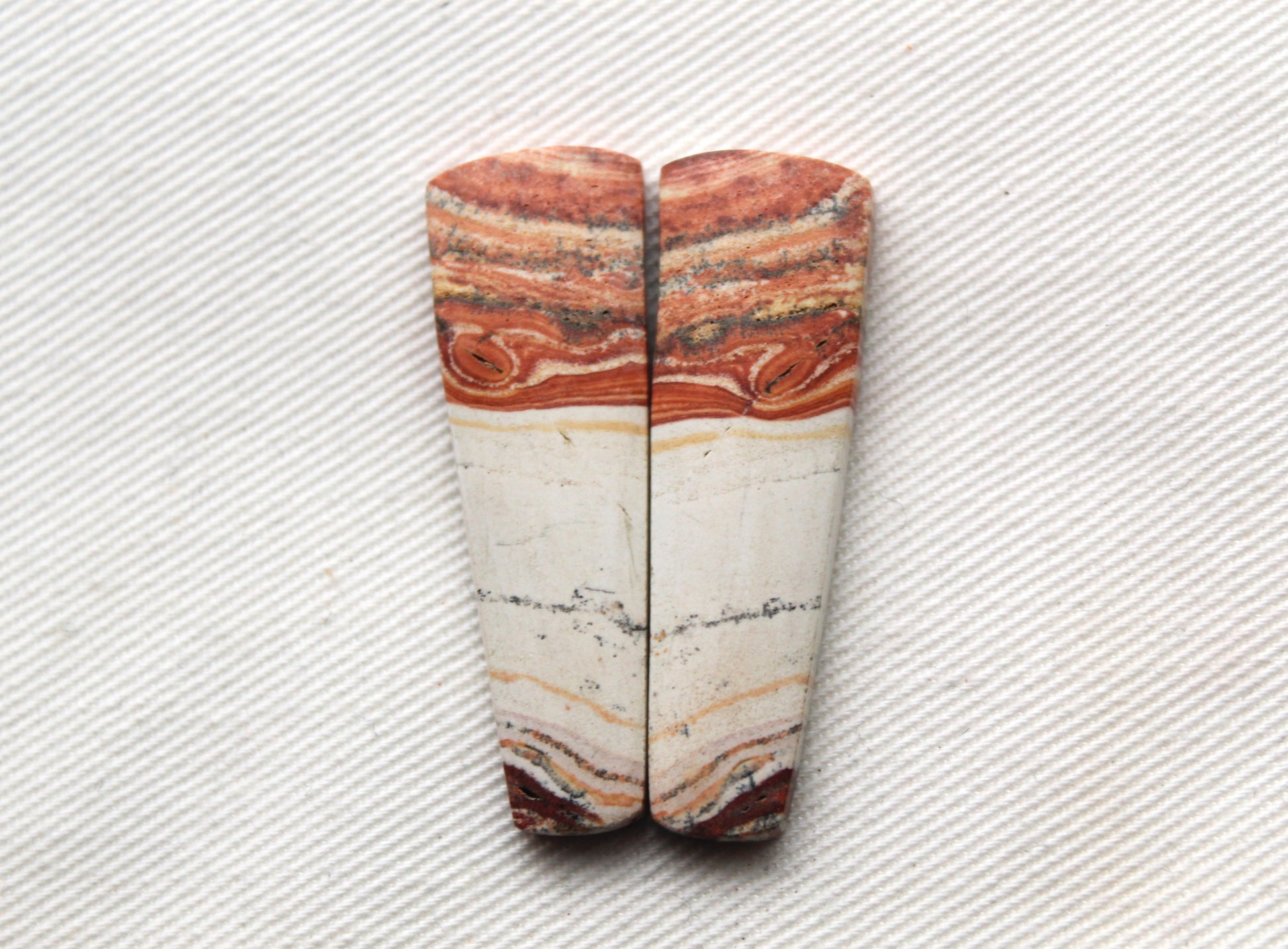 <tc>Paire de Cabochons de Jaspe Rétro crème jaune marron</tc>