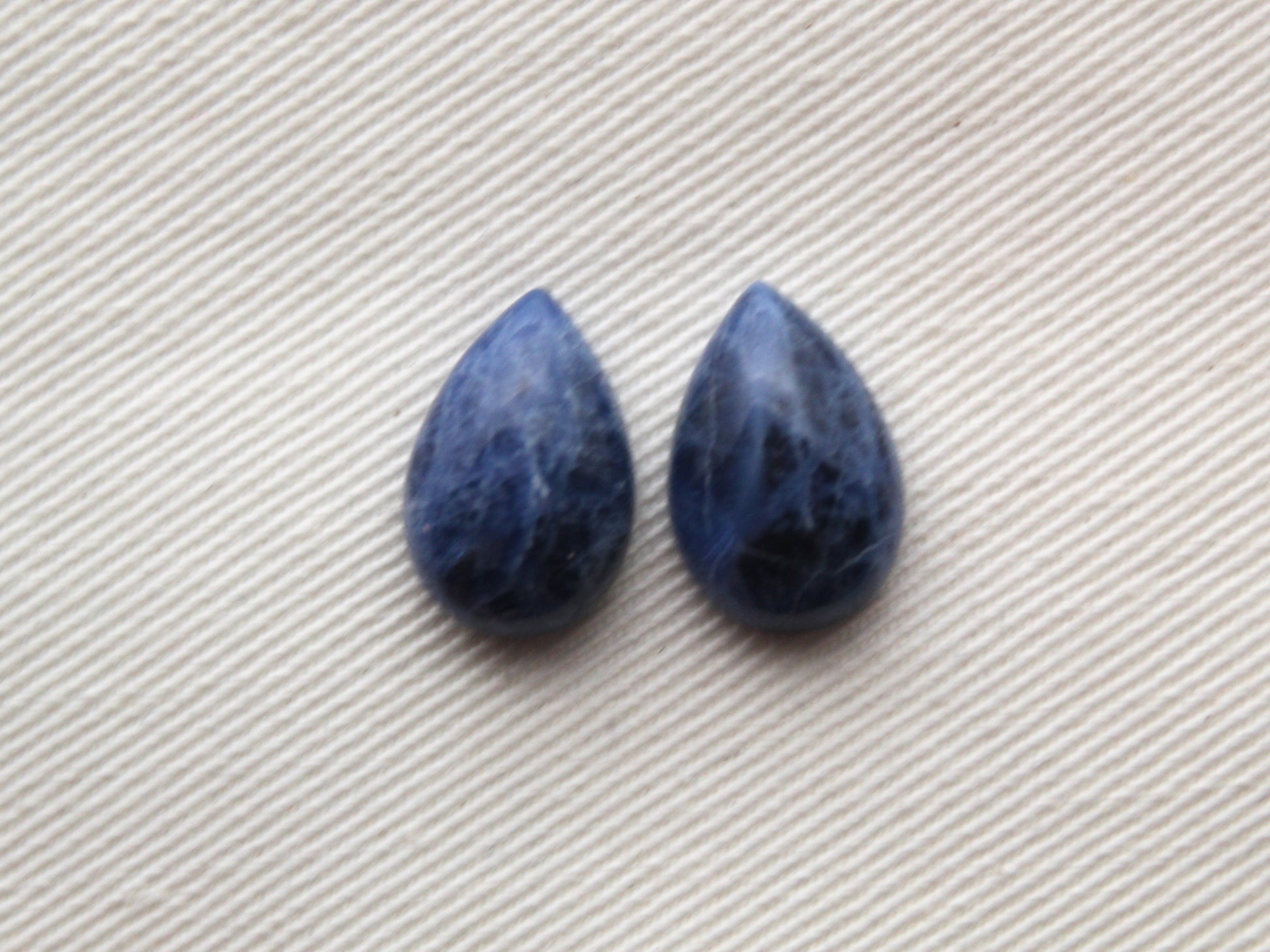 TWO Sodalite cabochons Gemstone blue Pear 10x15MM