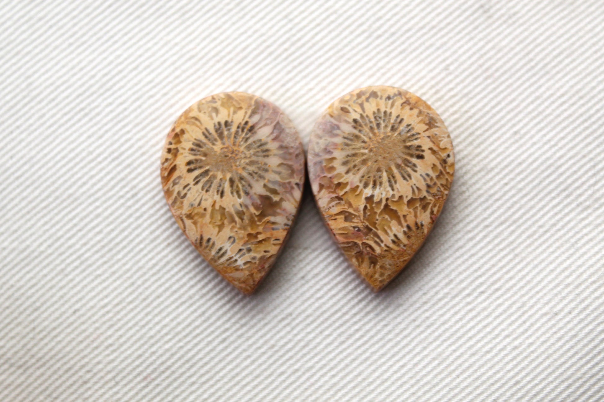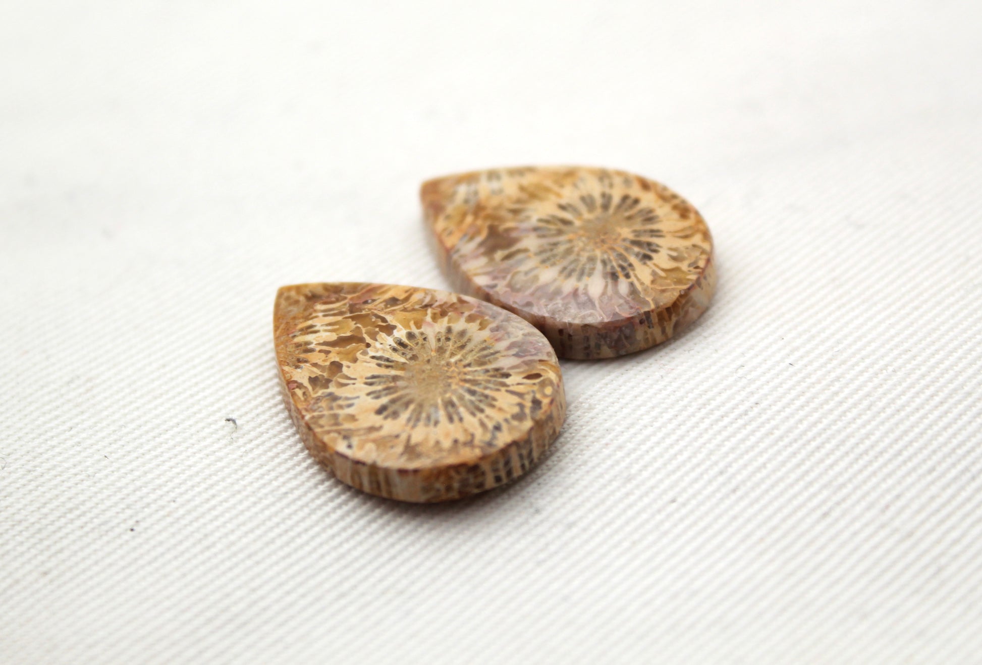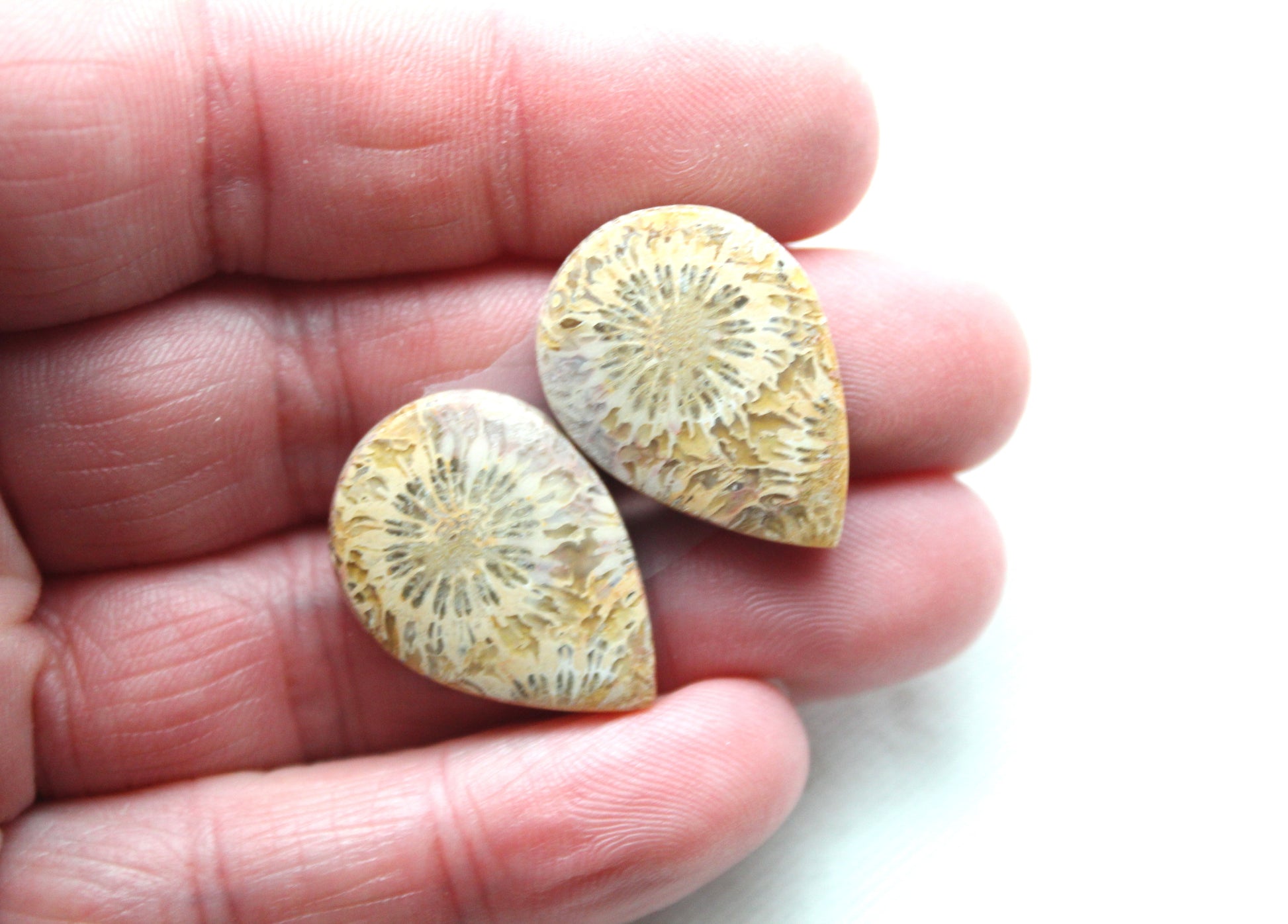 Fossilized Coral Pair of Gemstones cabochon beige natural