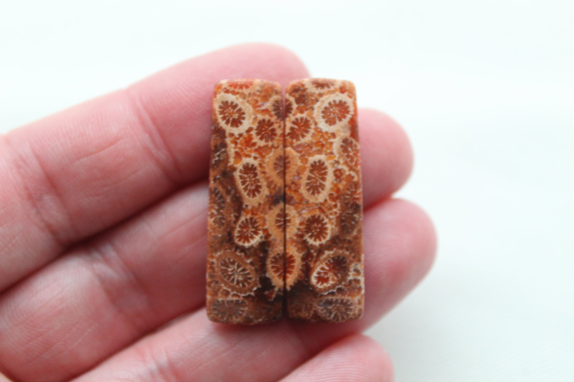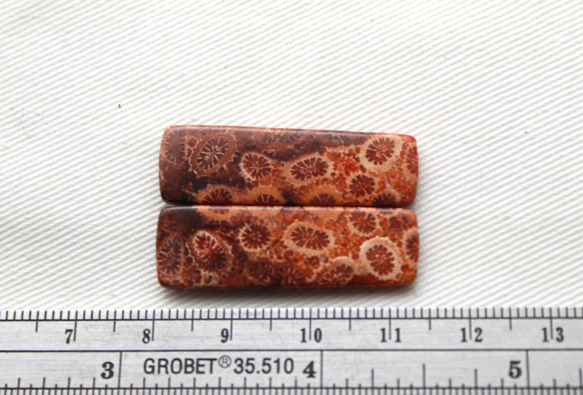 Fossilized Coral THIN Pair of Gemstones cabochon orange natural