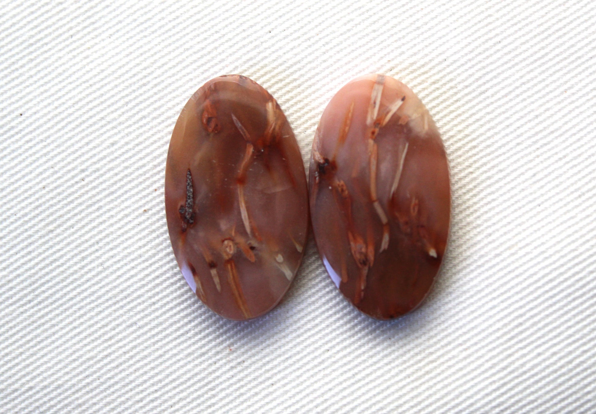 NICE Pair of Petrified Wood Cabochons pink Oval