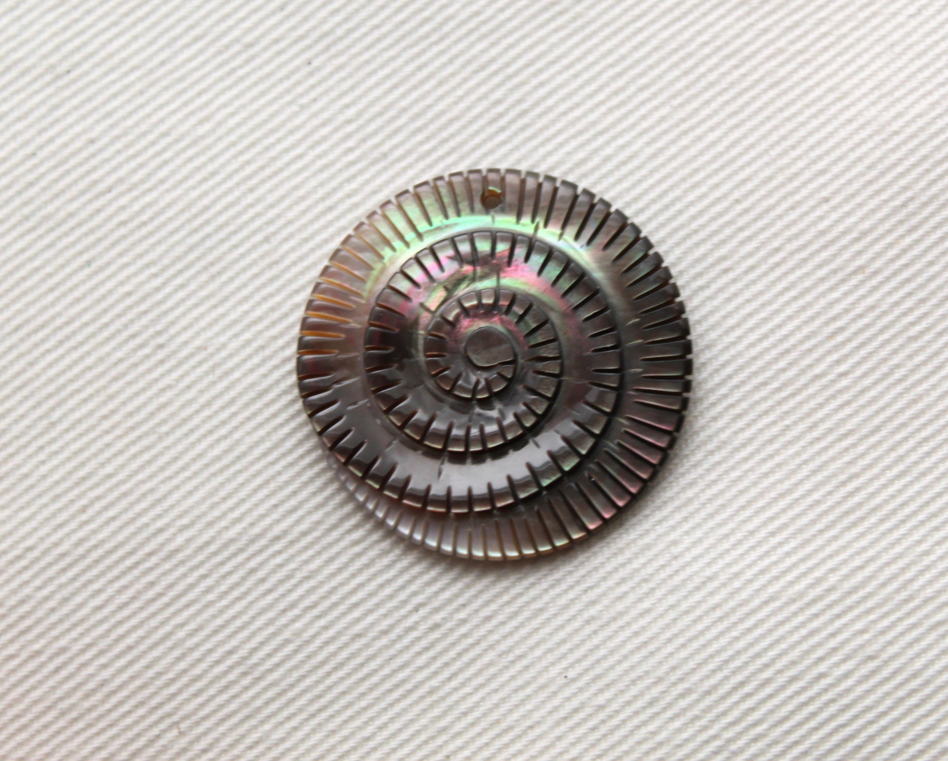 ONE Mother of Pearl drilled cabochon Gemstone round Swirl 25MM