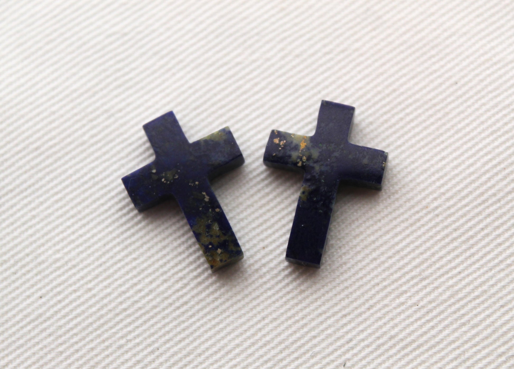 Pair of Lapis Lazuli cabochons Gemstones FLAT mini Cross 13X18MM