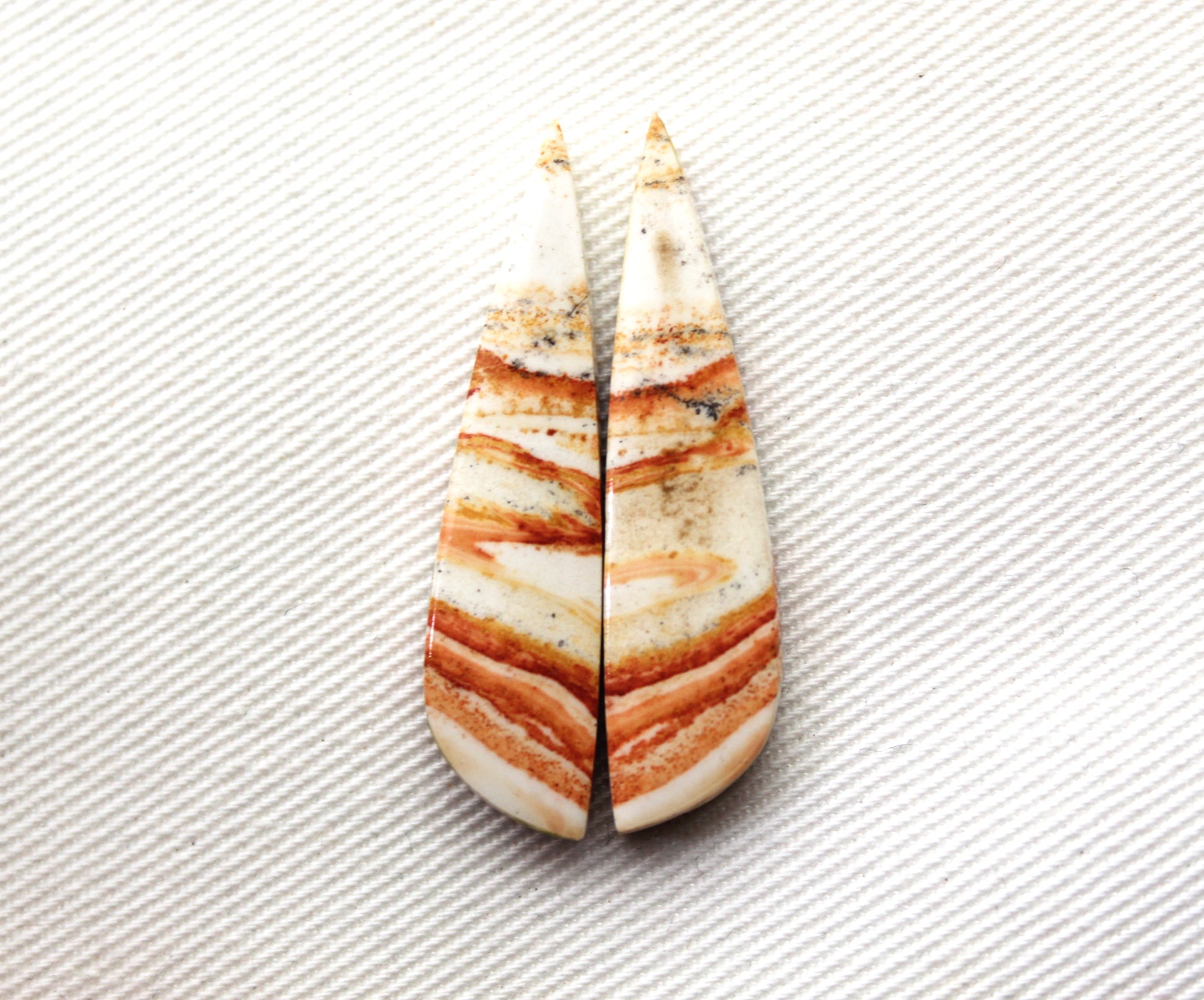 Pair of Retro Jasper Cabochon yellow orange teardrop