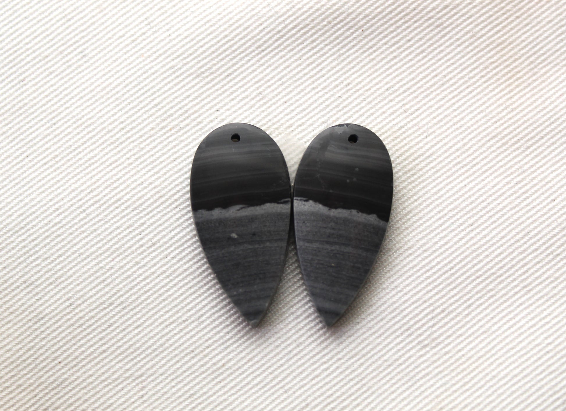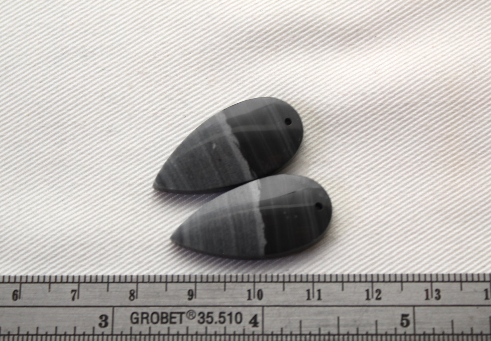 Pair of striped Jasper Cabochons Teardrop DRILLED