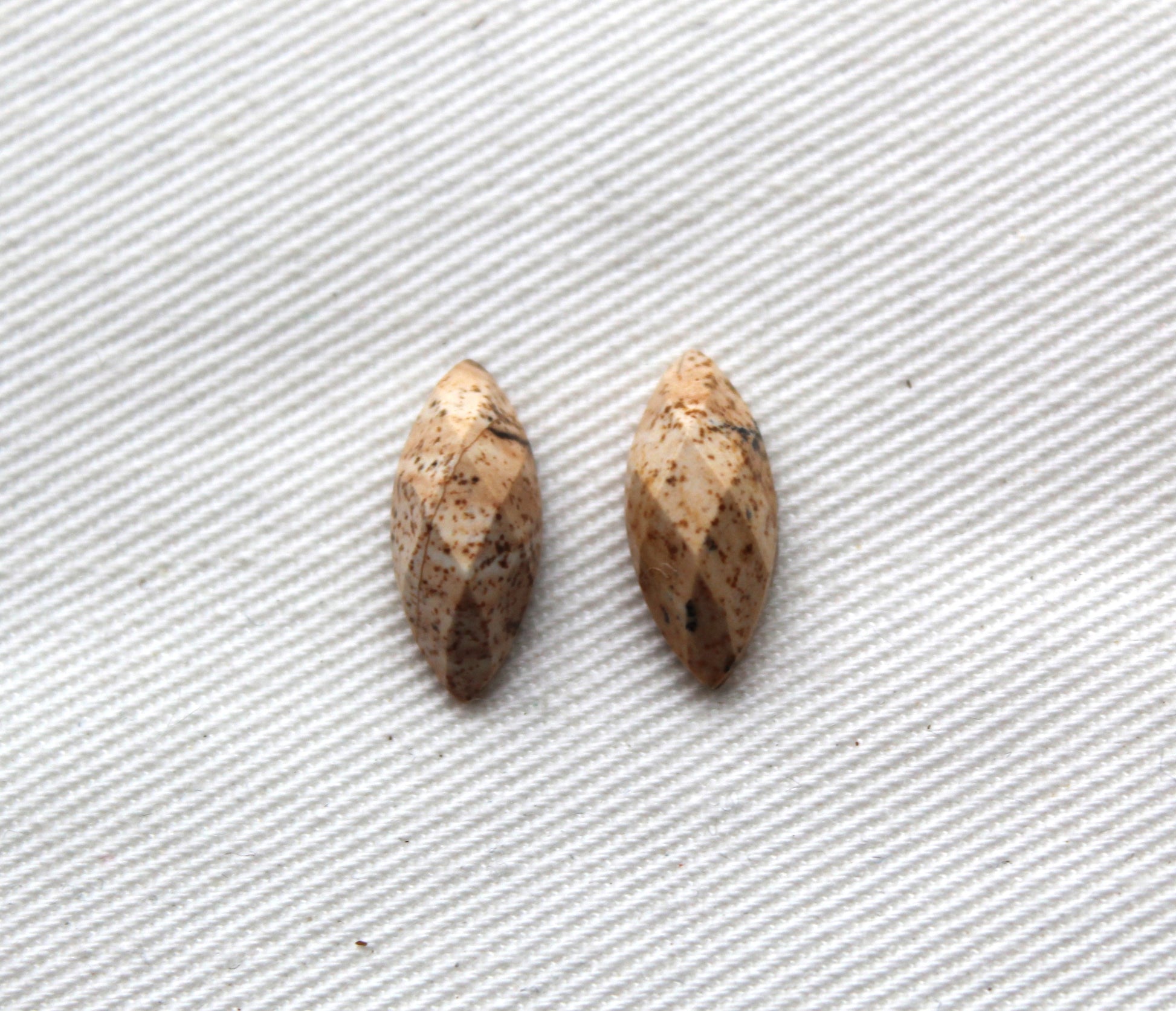 TWO Picture Jasper faceted Cabochons marquise 5X10MM