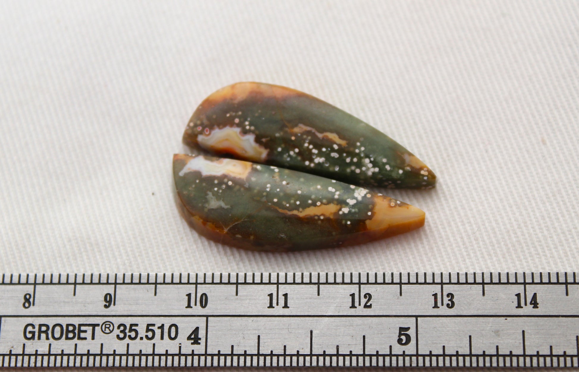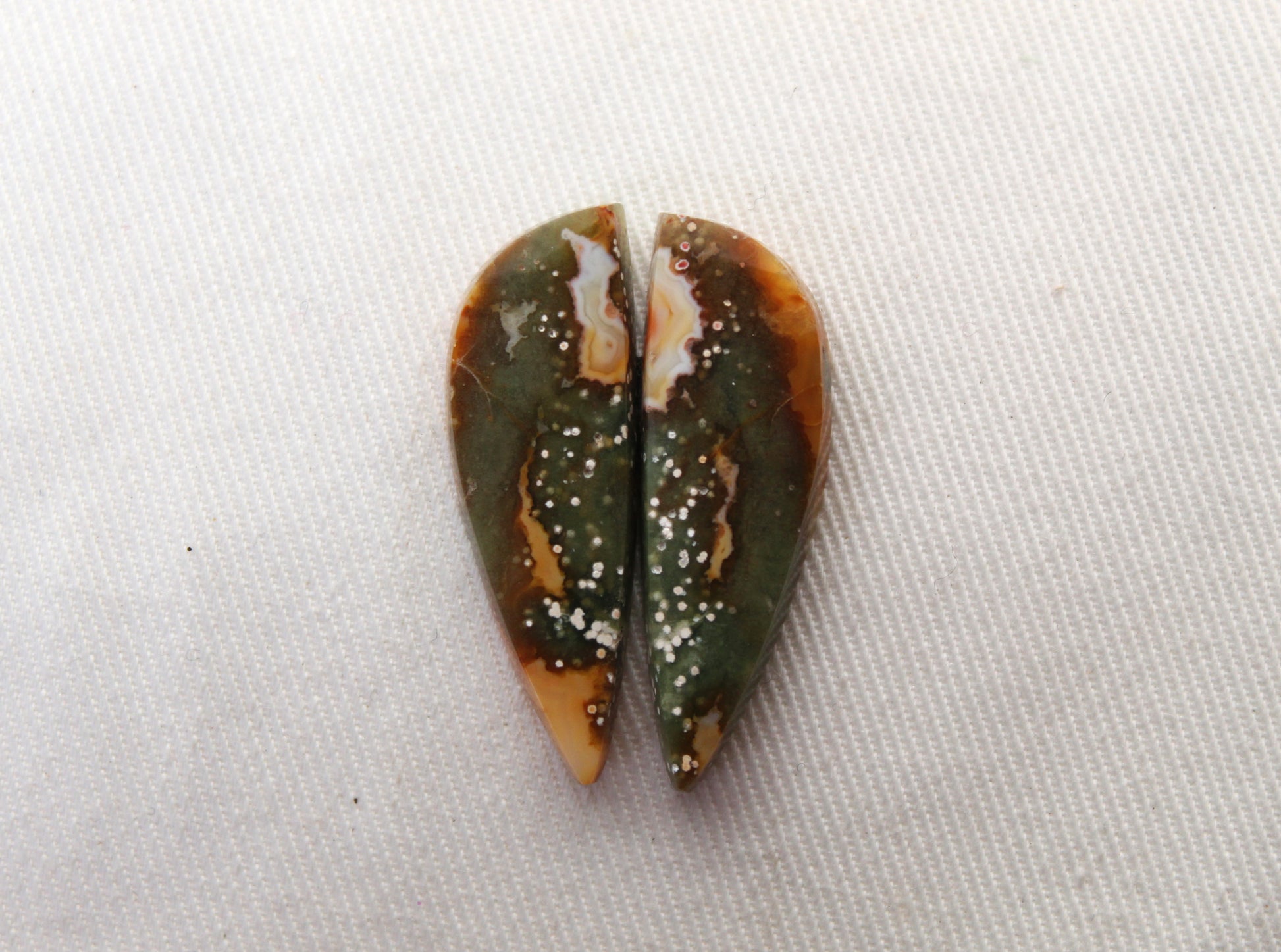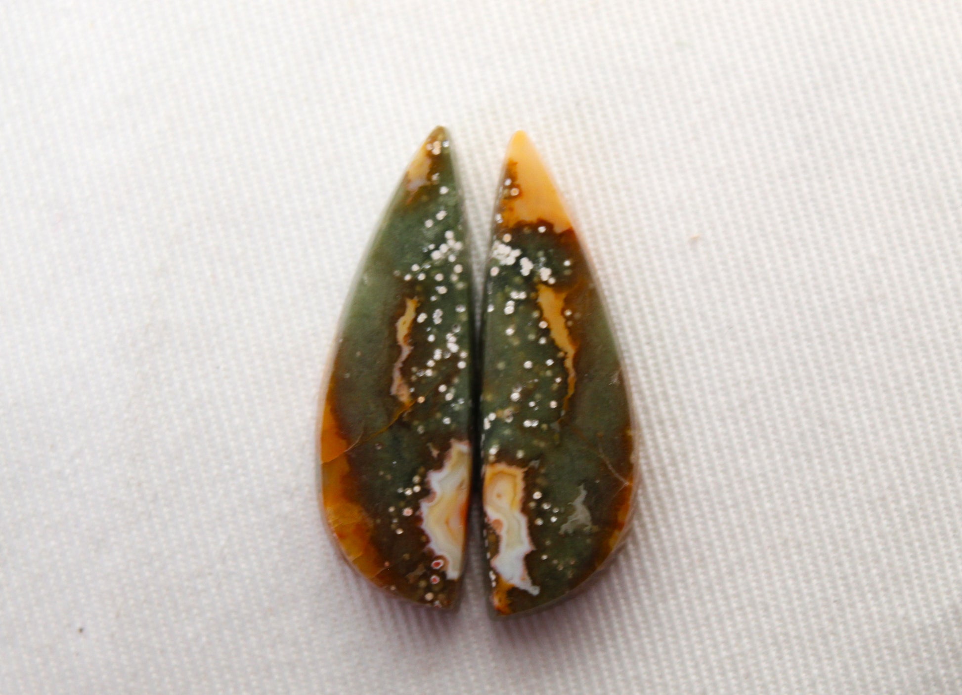 River Jasper Cabochon Pair Gemstone green yellow