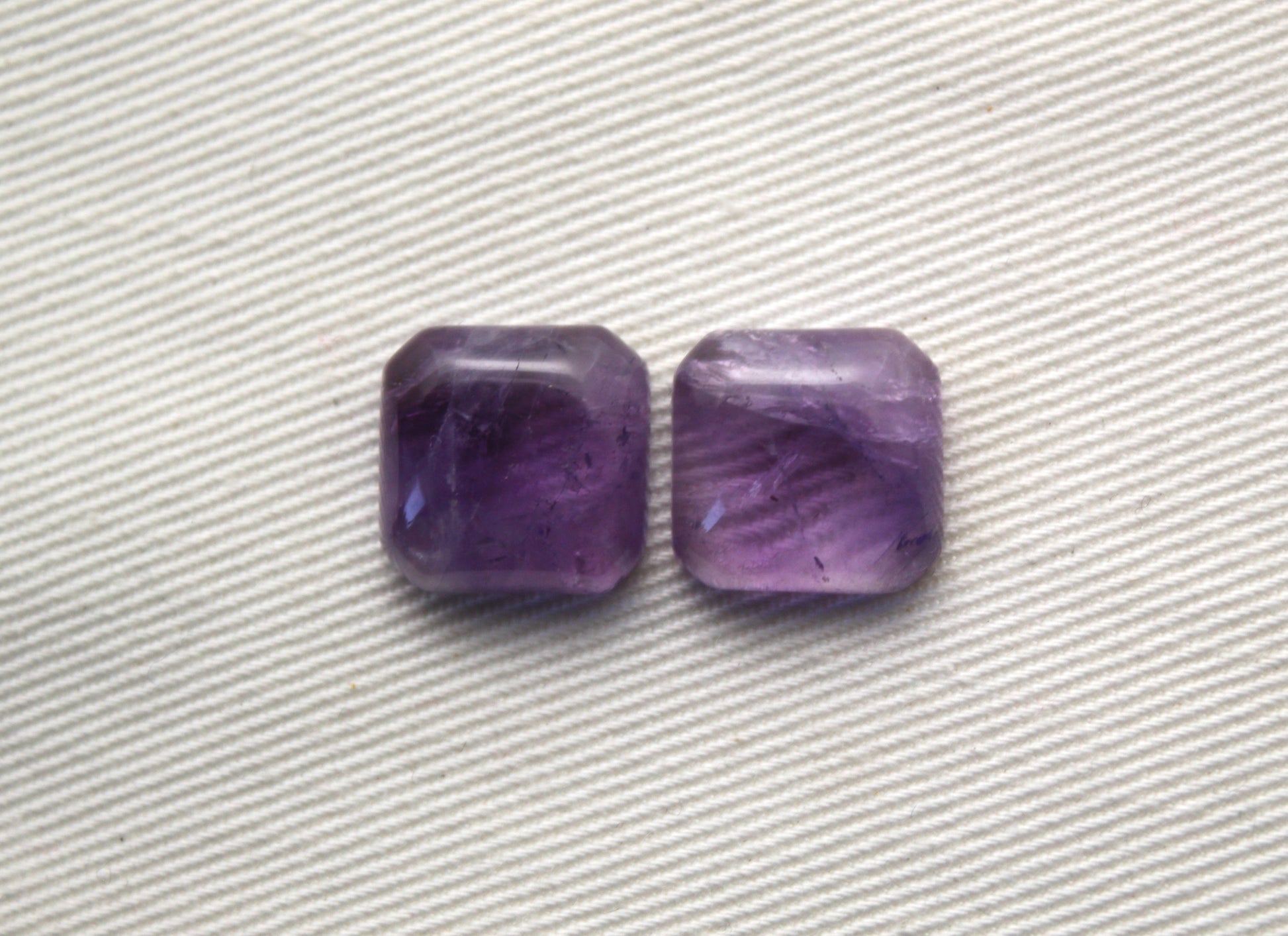 TWO amethyst Chevron Square emerald cabochons 12MM