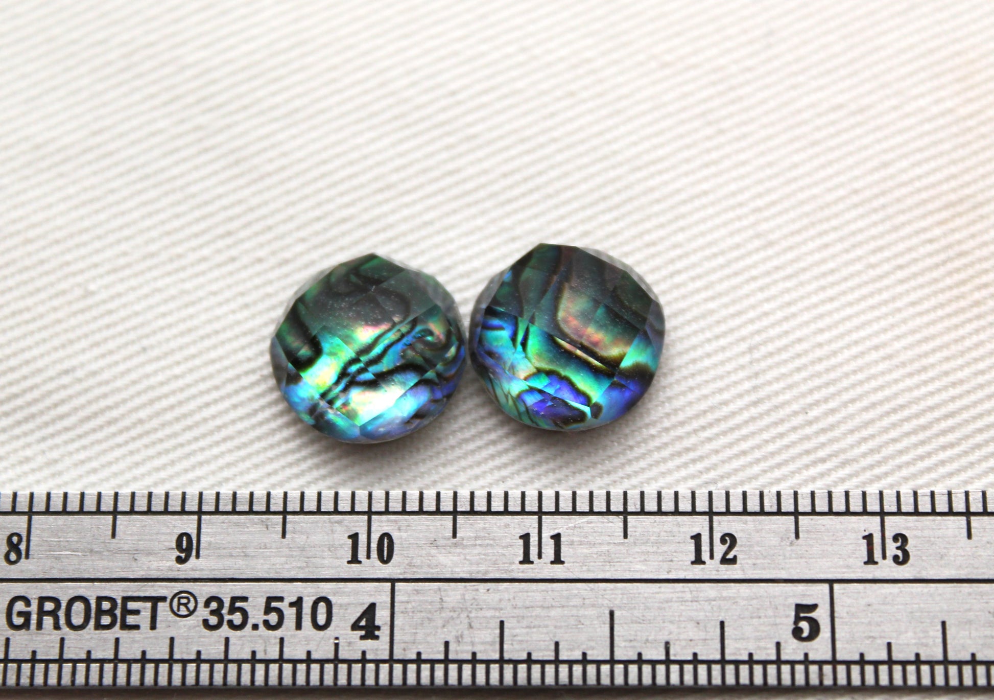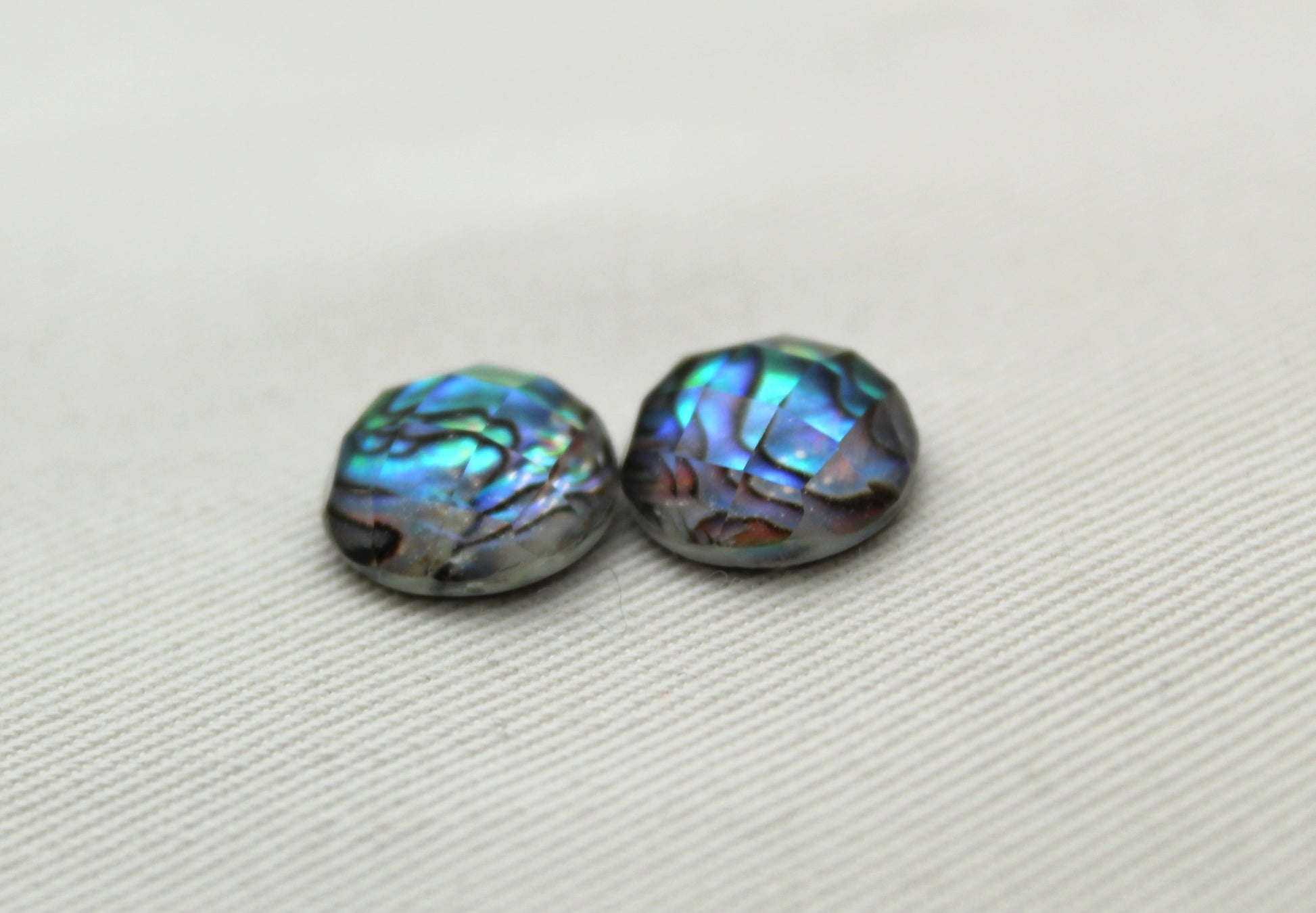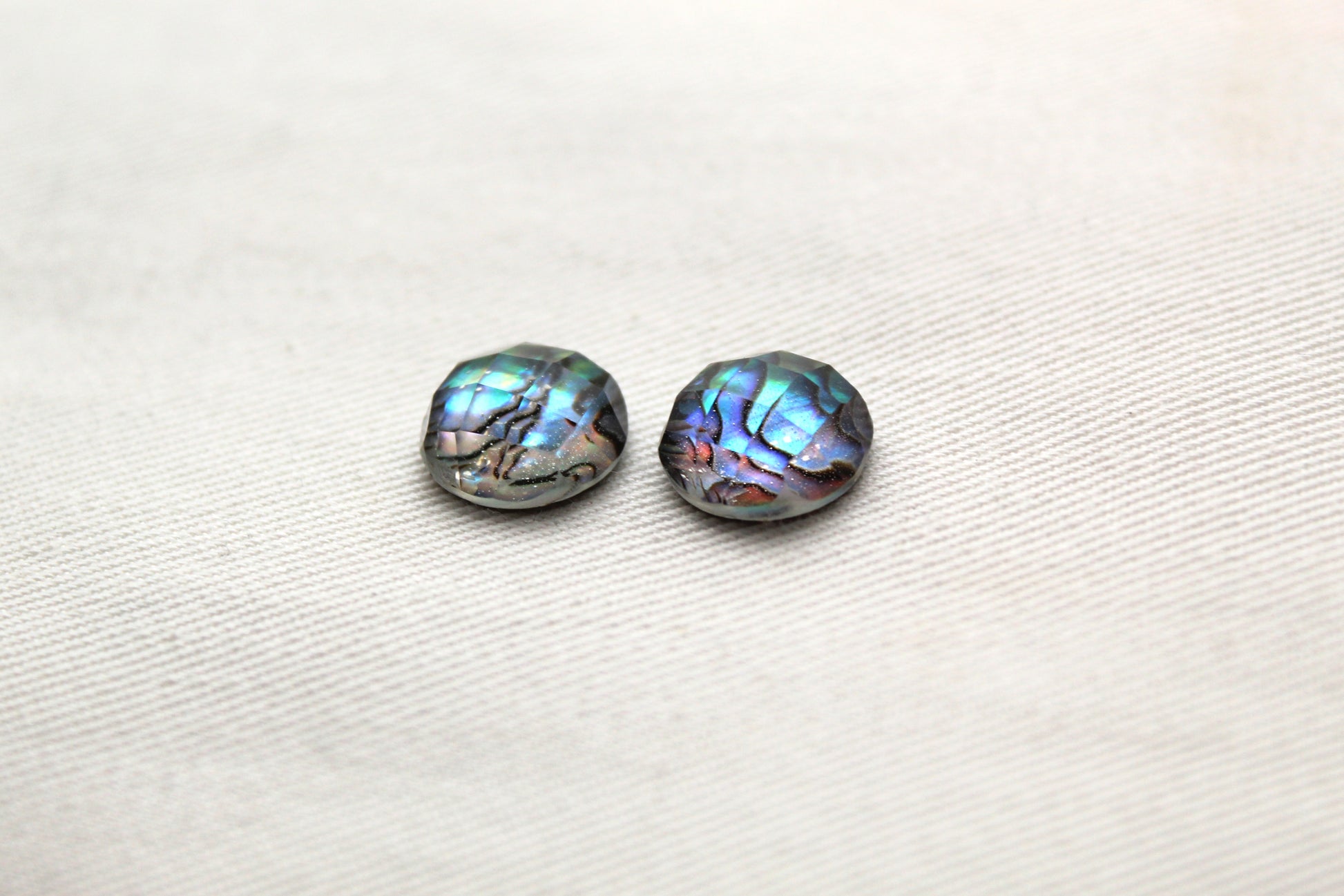 TWO cabochons Doublet of Paua Abalone and glass 12MM