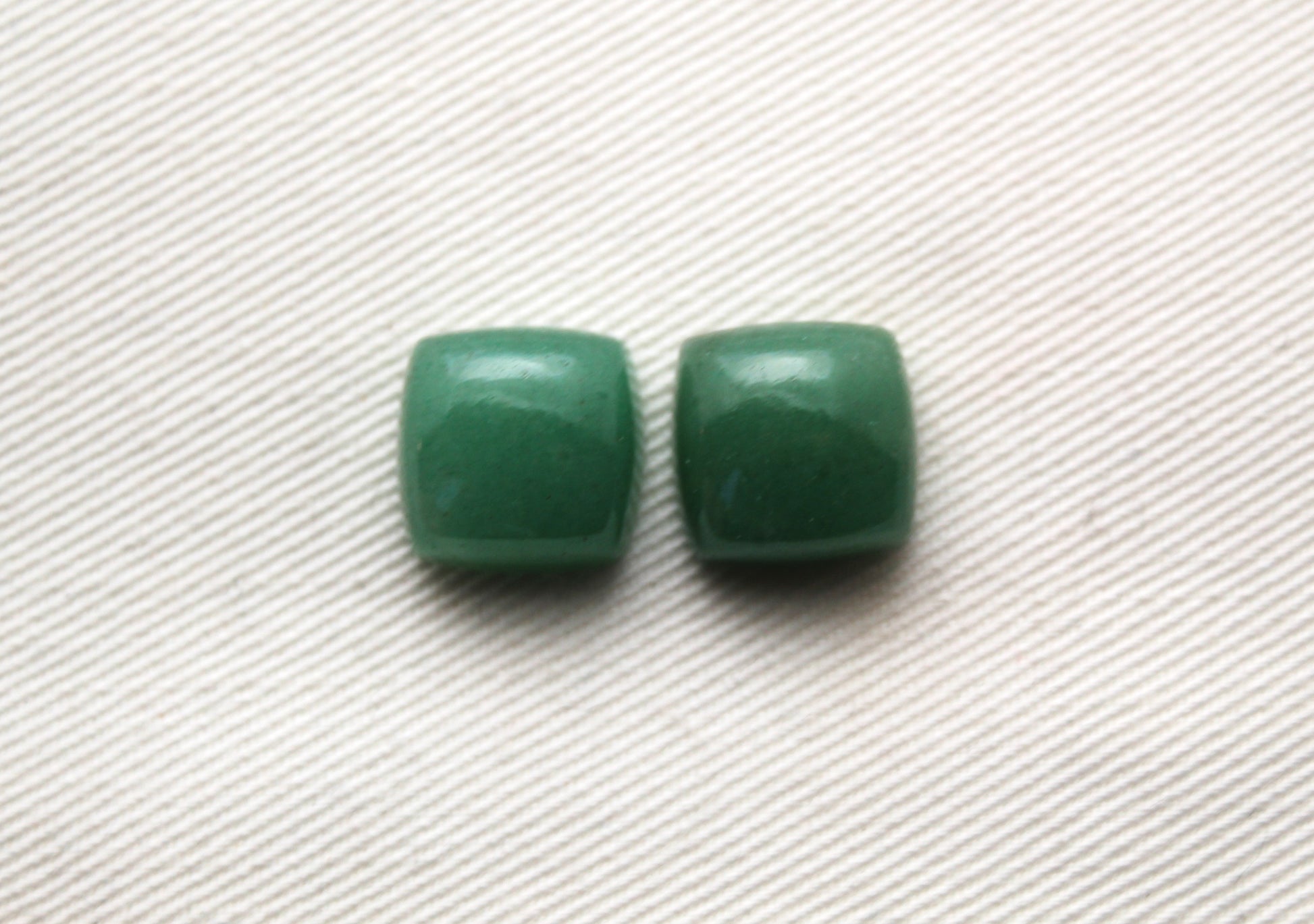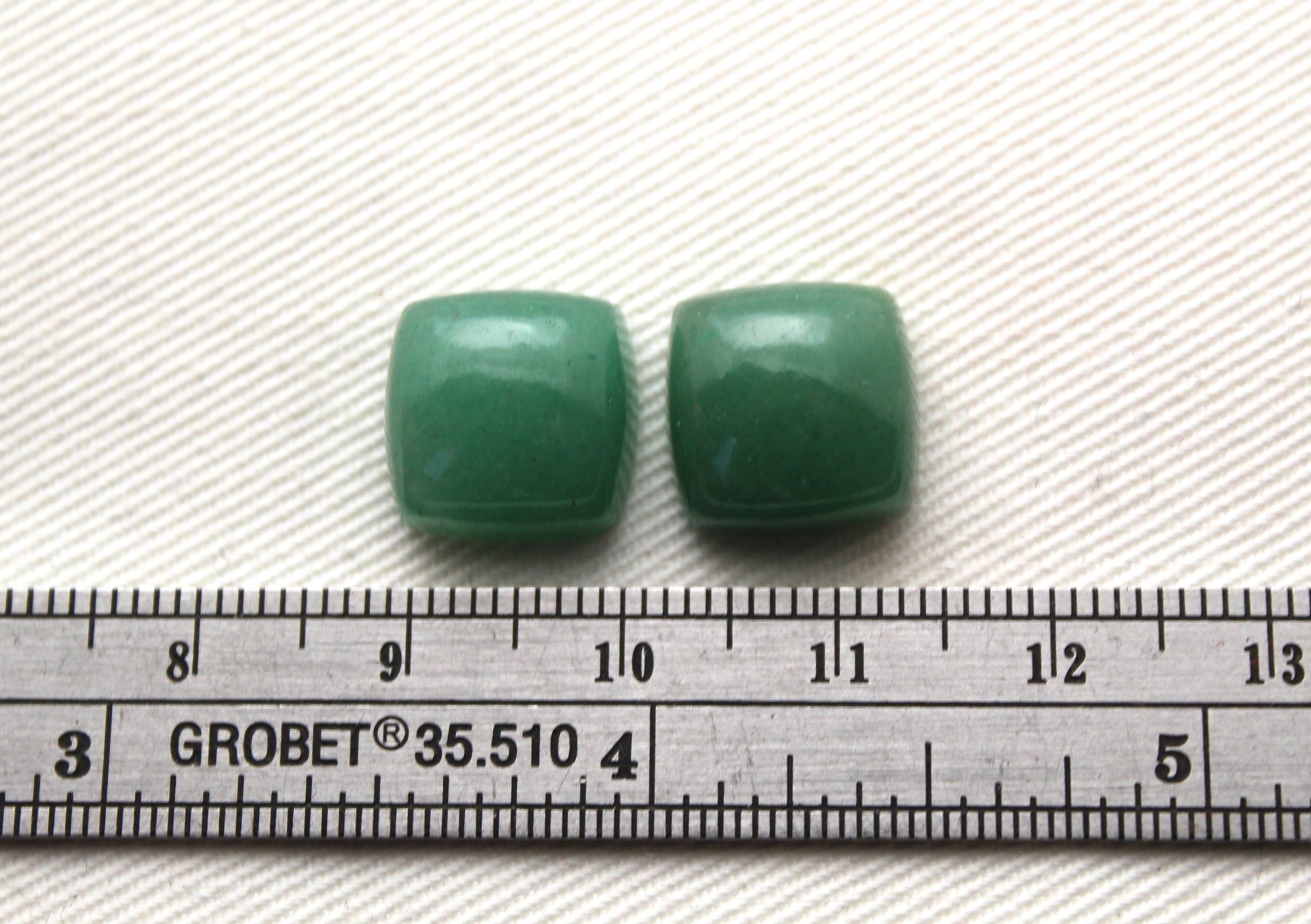TWO cushion green aventurine cabochons Gemstone 12MM