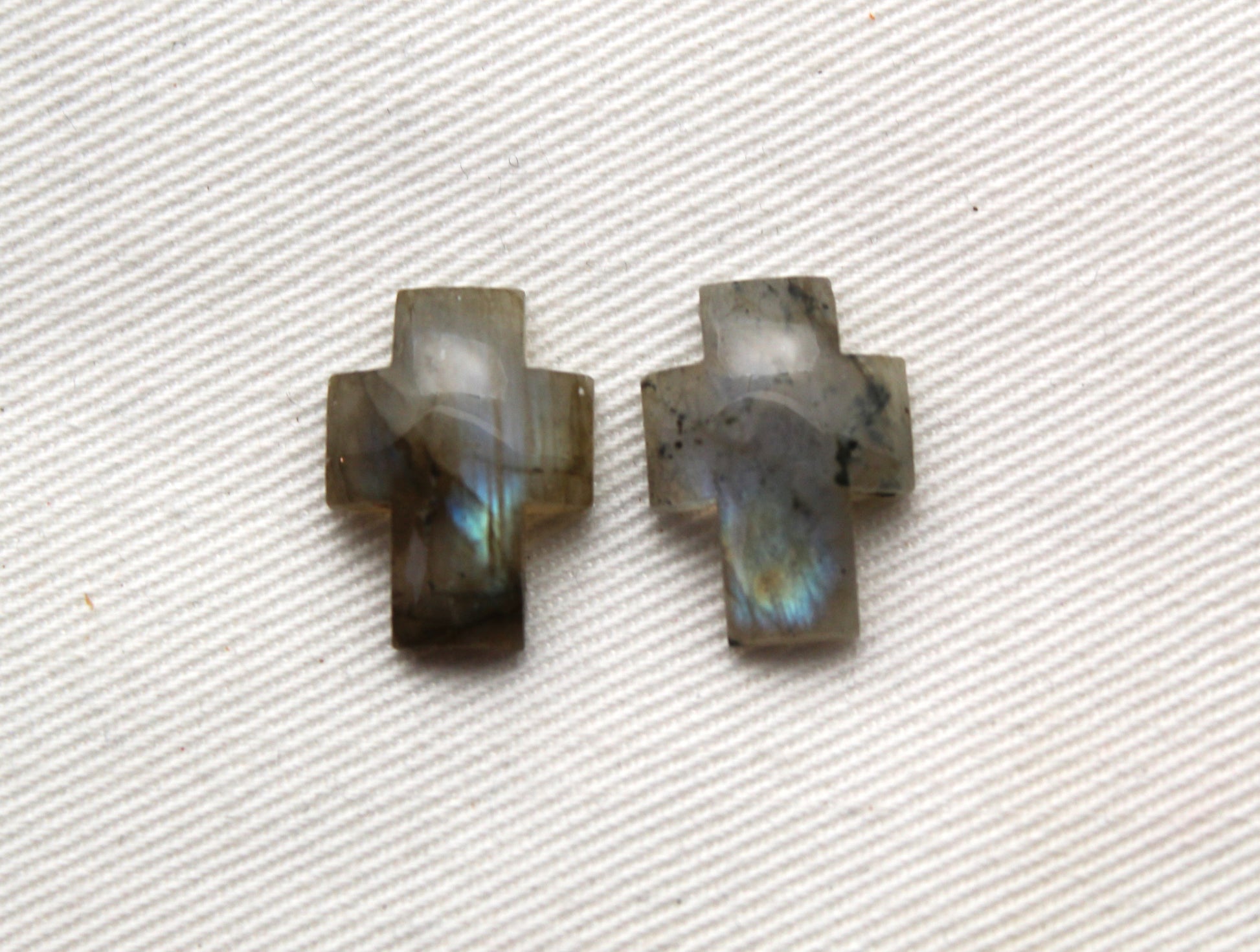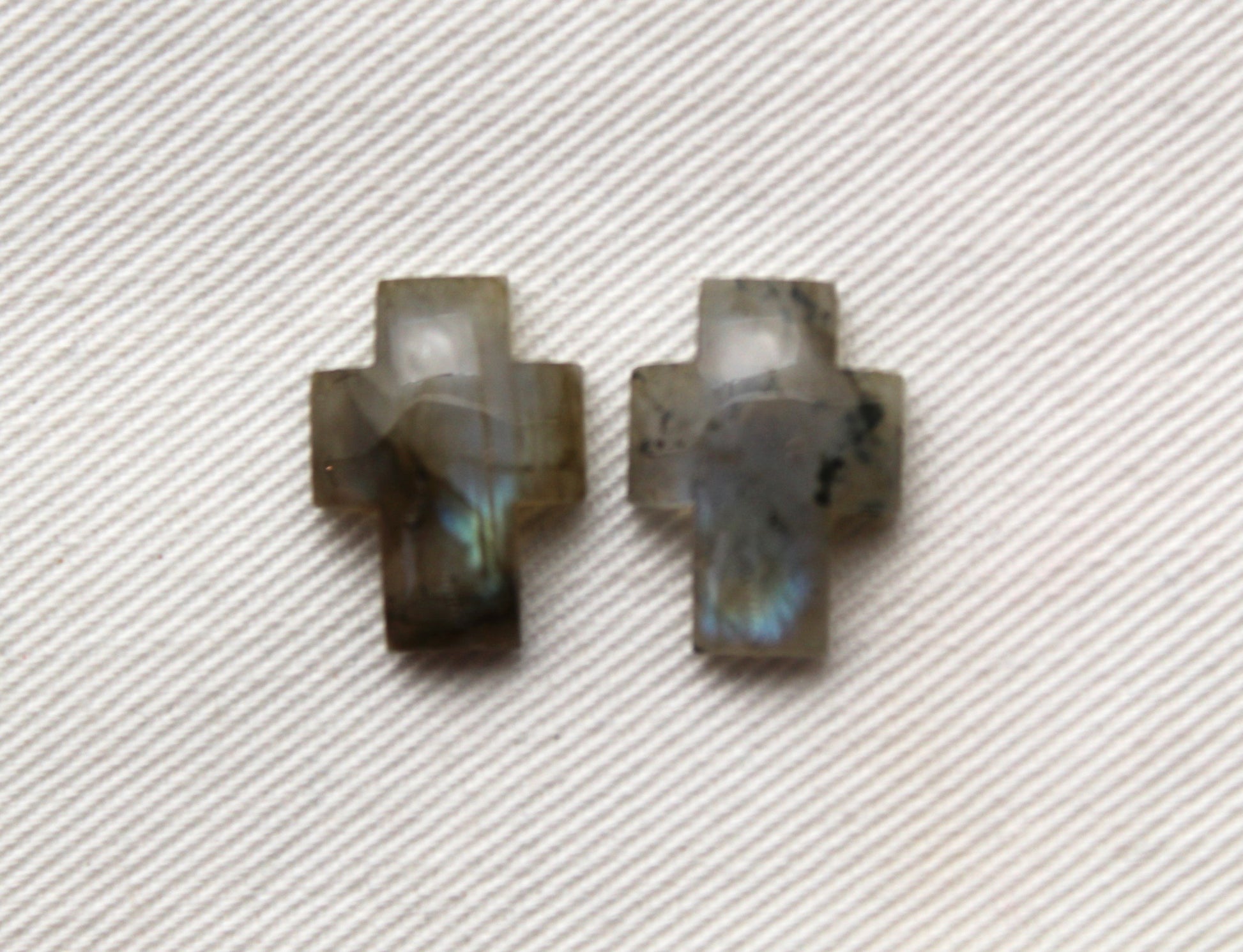 TWO Labradorite Cabochon Gemstones CROSS 12x16MM