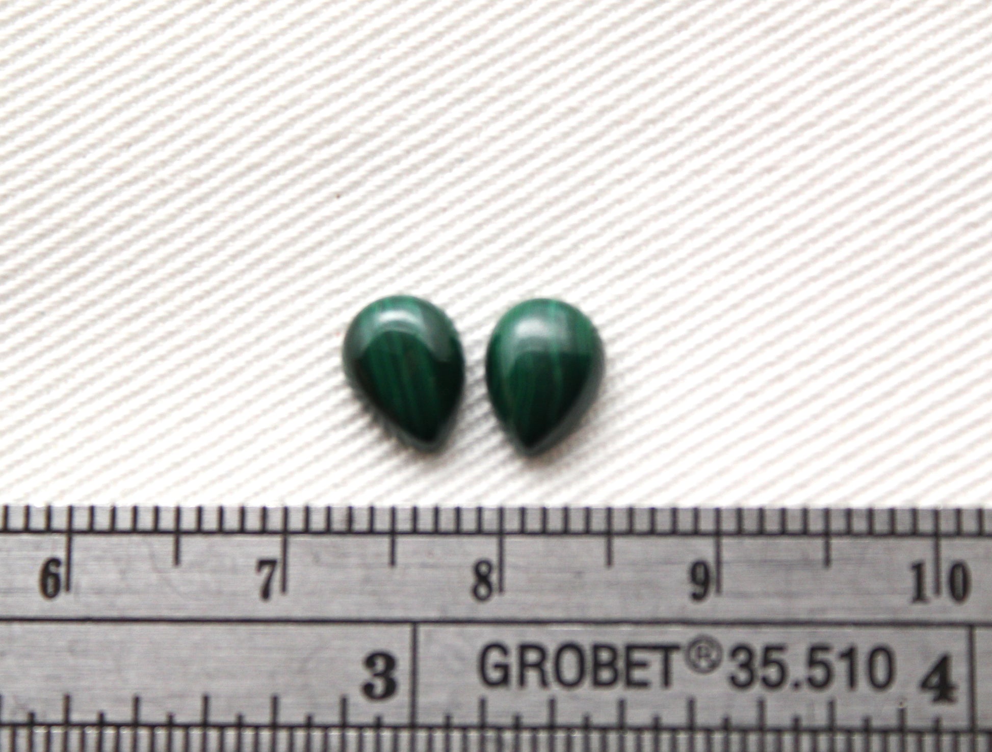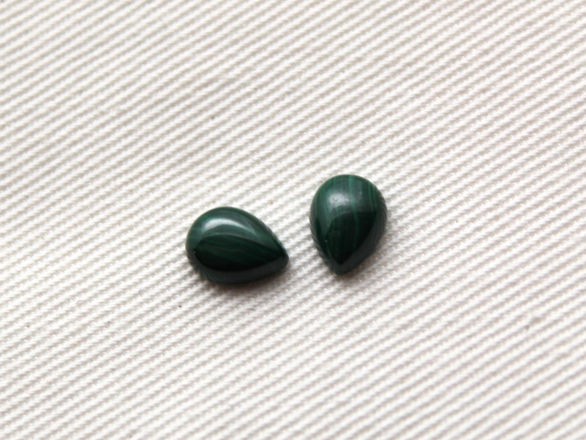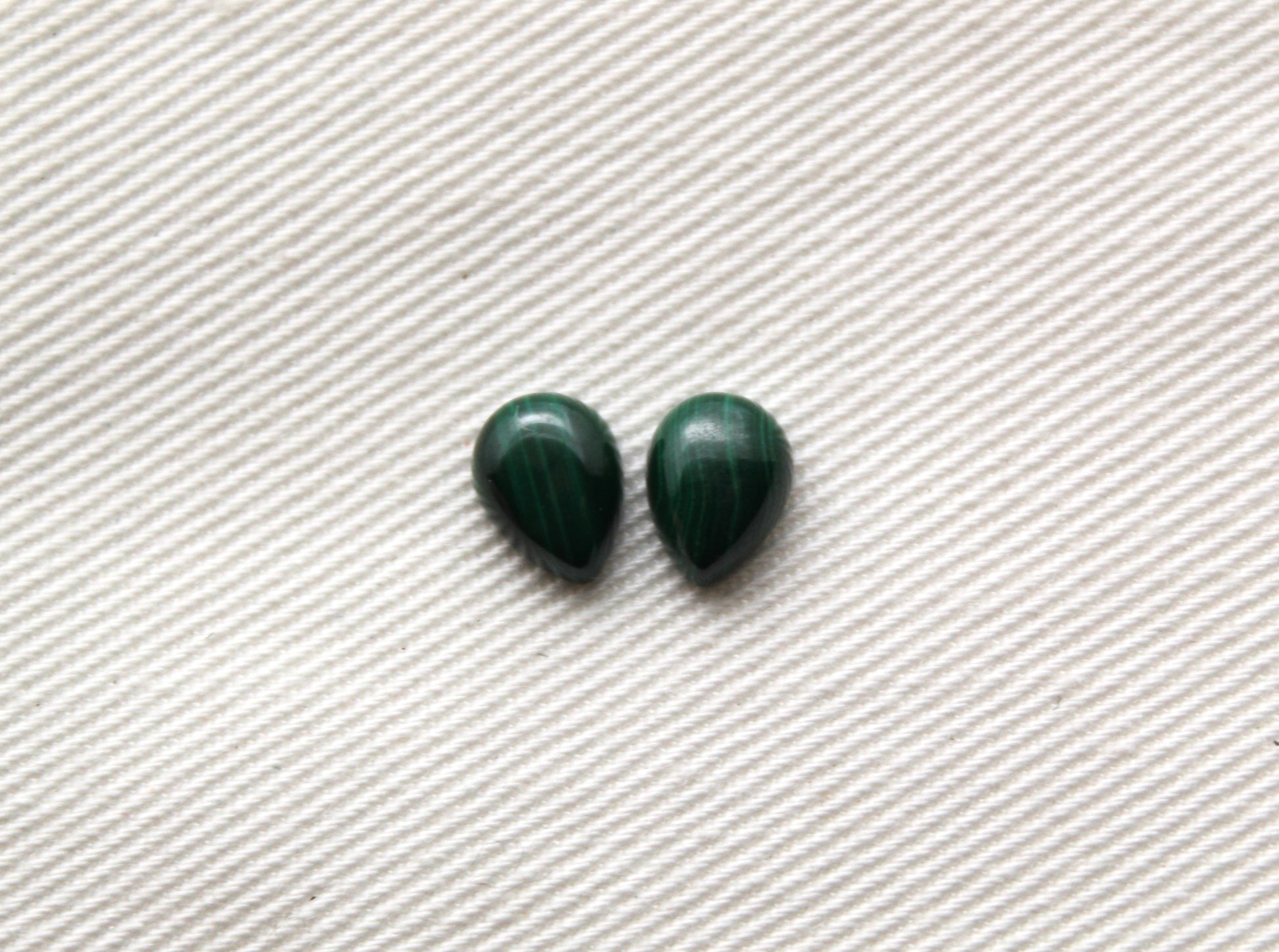 TWO MINI pear Malachite Cabochons Green Gemstones 6X8MM