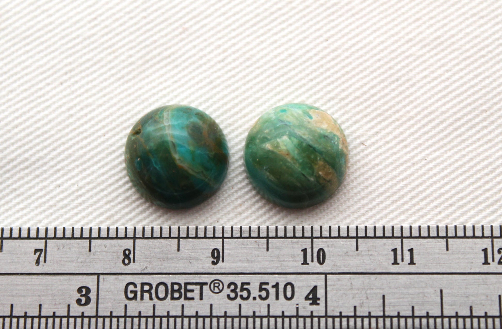 TWO Peruvian Opals Cabochons green blue gemstone round 12MM