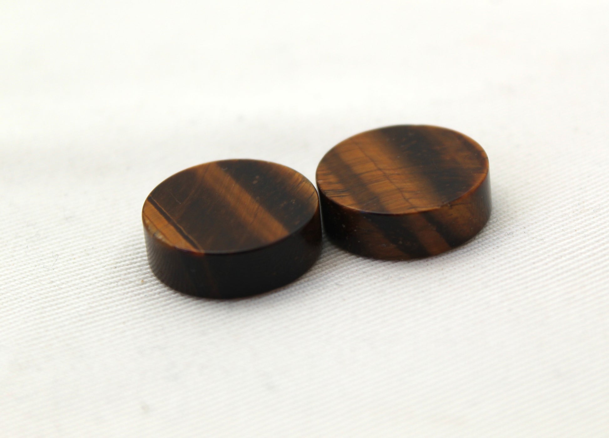 TWO Tiger Eye Cabochon Gemstone FLAT THICK round 19MM